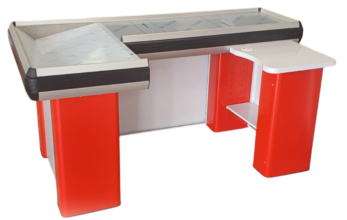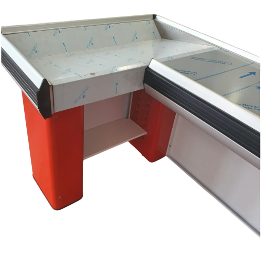 Masa pentru casa de marcat U 180 CM,rama din aluminium,Stanga-Alb/Rosu